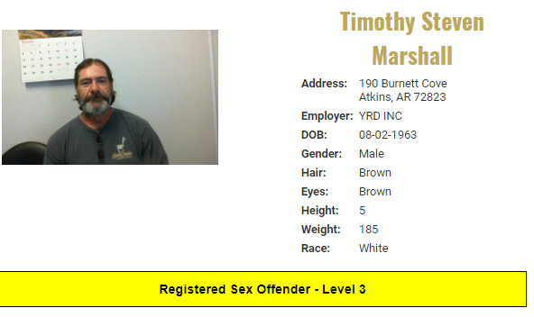 Arkansas Code Annotated §12-12-913 (j)(1)(A), mandated that information on registered sex offenders determined to require the broadest level of notification to the public (Level 3 and Level 4), must be available on the Arkansas state website by January 1, 2004. Pursuant to §12-12-911(Viii), Level 2 offenders that appear on the website are offenders that were 18 years of age or older at the time of the commission of the sex offense and the victim was 14 years of age or younger.