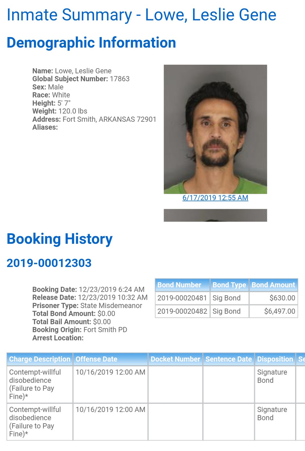 Sebastian County Mugshots: December 23rd, 2019