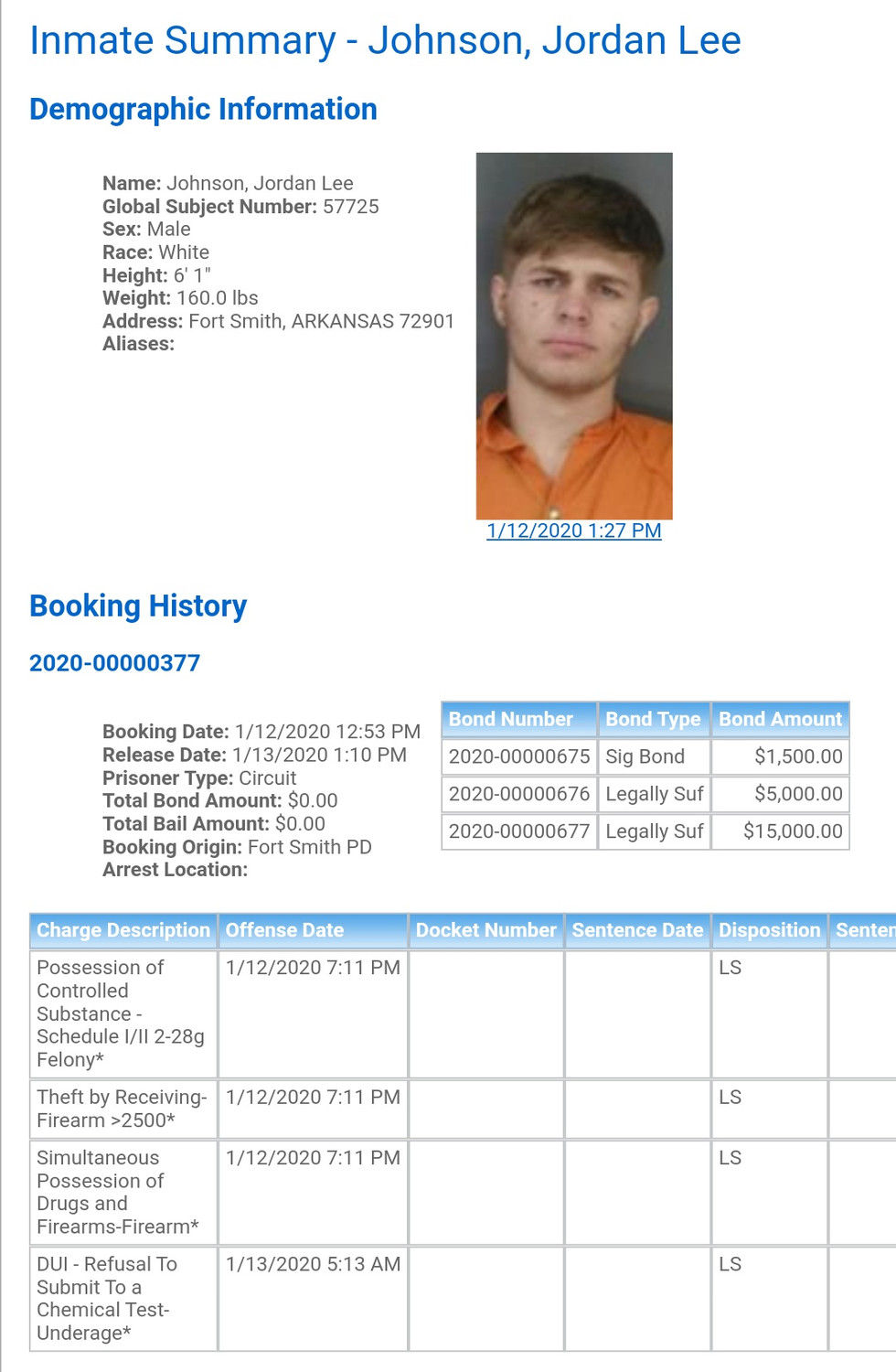 Sebastian County Mugshots: January 12th, 2020
