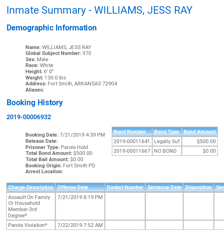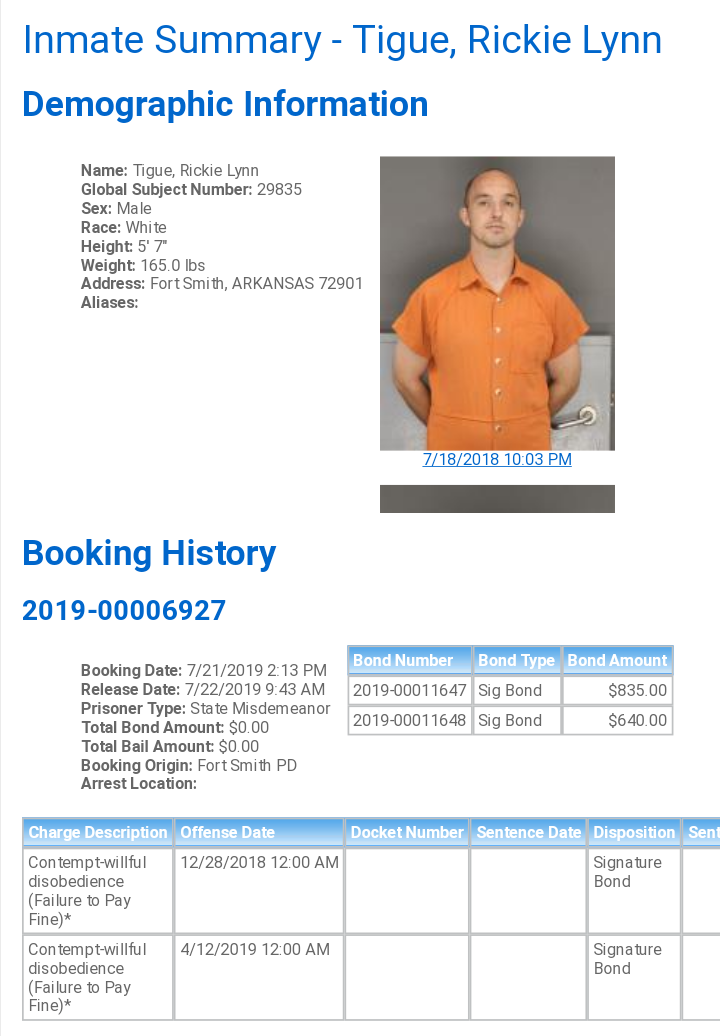 Sebastian County Mugshots: July 21st, 2019