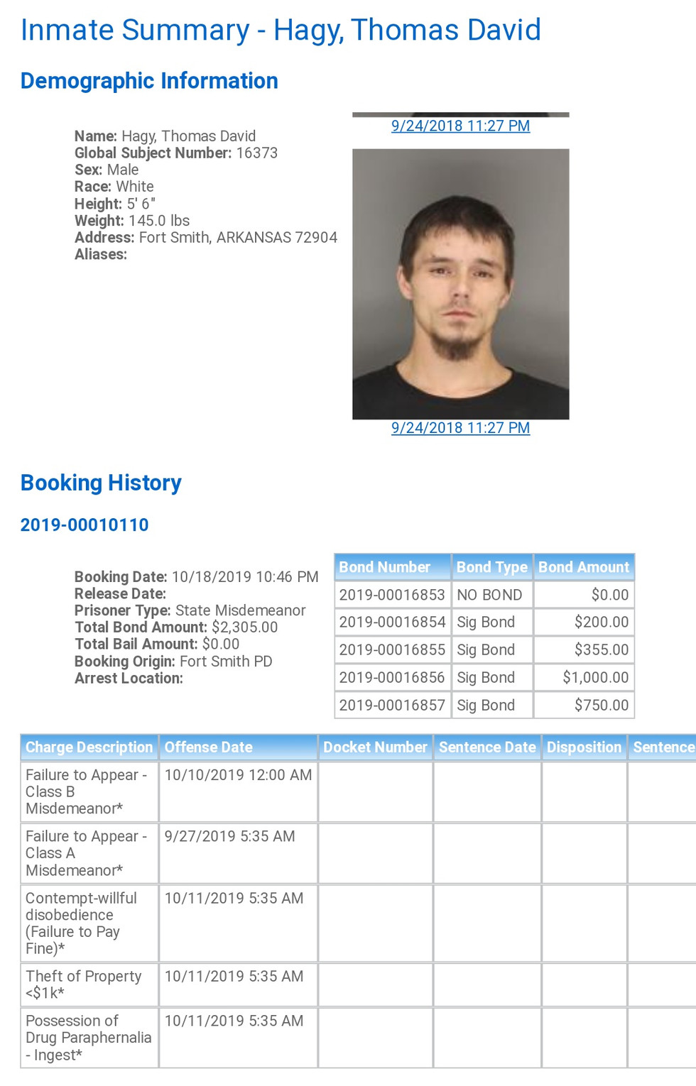 Sebastian County Mugshots: October 18th & 19th, 2019